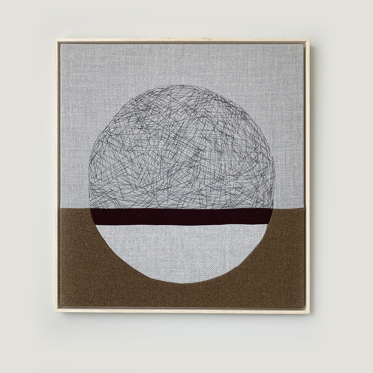 Ever since I studied architecture I’ve loved drawing​.​ ​Especially shading, creating depth and layers by applying many small lines​ and scribbles. I’ve tried to recreate this same effect with my sewing machine. This gives all the artworks in the SUN series a unique touch, texture, and added depth.