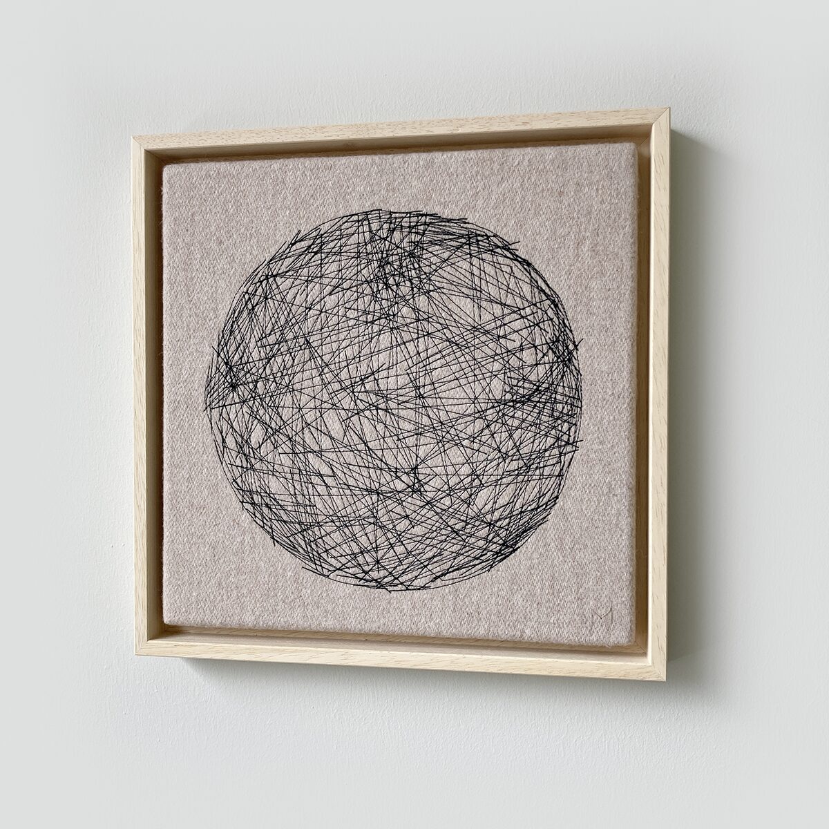L​ittle Sun is made of sand coloured wool over which a pattern is stitched with a sewing machine. Because the stitching is hand-embroidered, each ​Little Sun is unique.